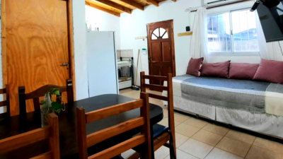 Departamento de 2 ambientes (hasta 4 personas): Habitación matrimonial con TV y calefacción; Living y Comedor con Aire Acondicionado F/C y TV Smart, posee un sommier con otro sommier carrito y Cocina completa con Horno, Heladera y Microondas.